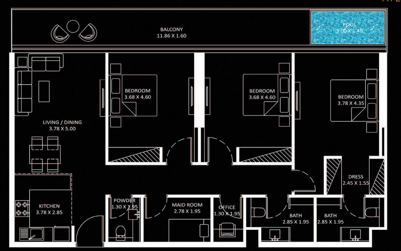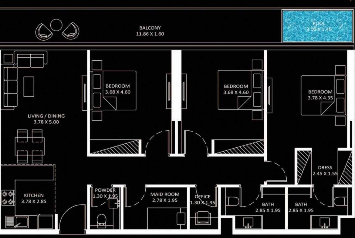 Luxurious Living on 101st Floor! Discover Danube Properties‘ latest masterpiece, a 3-bedroom apartment plus maid, study room and private pool at BAYZ 101. Imagine owning a piece of the Dubai skyline at one of the tallest towers in the city and starting each day with stunning panoramic views of the Burj Khalifa and Downtown Dubai.